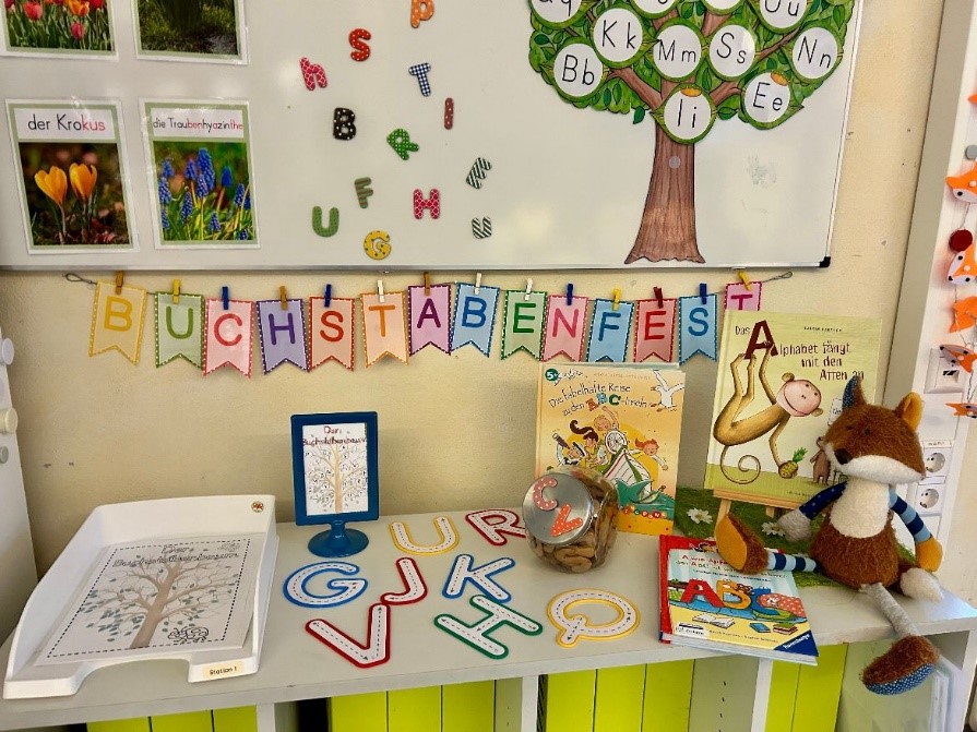 Am letzten Schultag vor den Osterferien feierte die Klasse 1a ein Buchstabenfest, um den erfolgreichen Abschluss des Buchstabenlernens zu feiern.